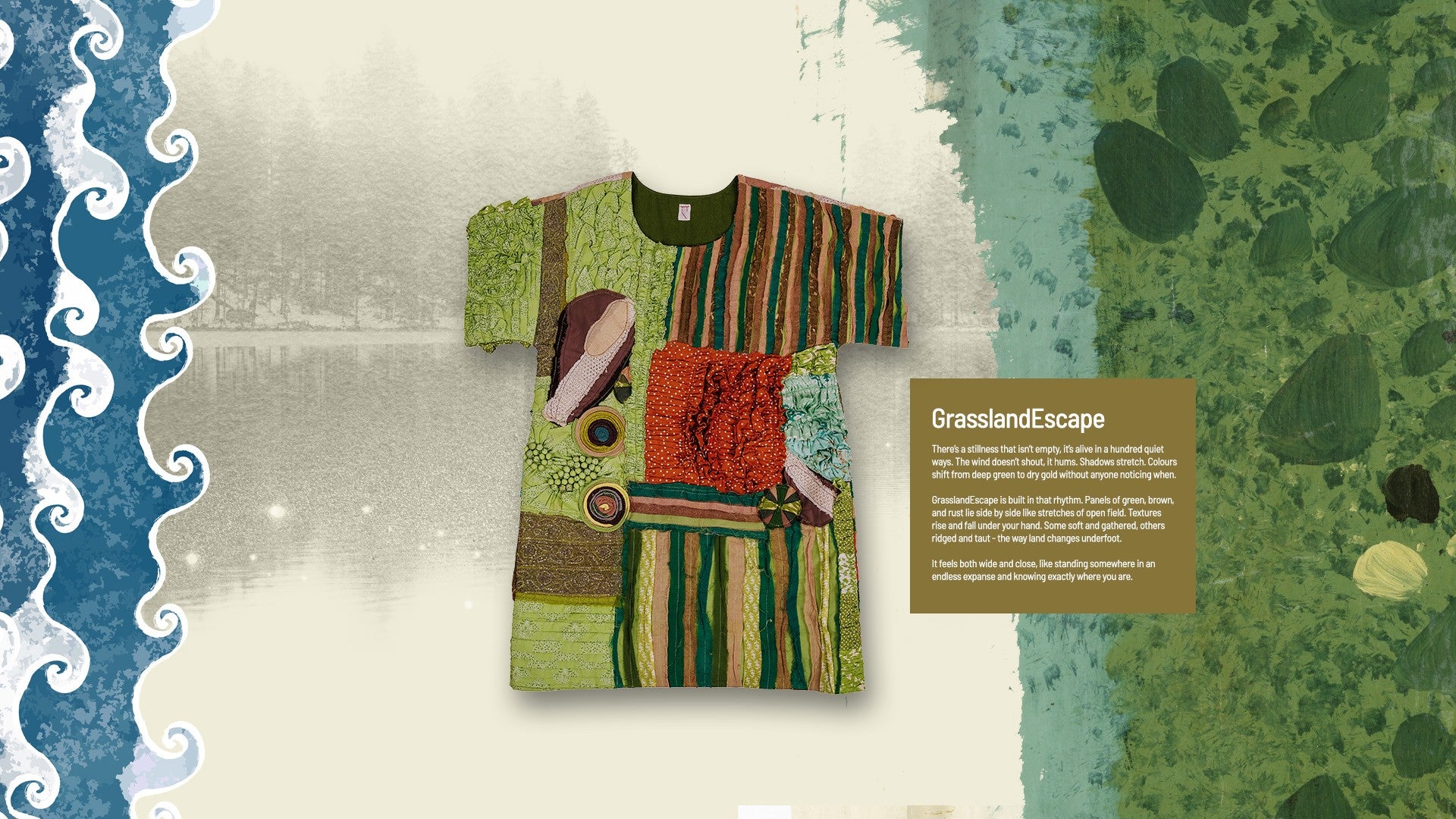 • Patchwork inspired by grassland textures and hues